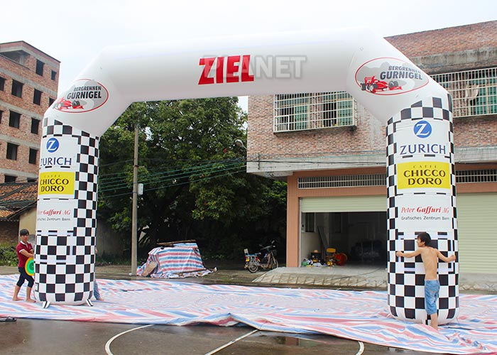 Inflatable arch is inflatable structure that is inflated by an external cold air inflation fan connected to the arch via a tube (also can be made into airtight style without inflation all the time). Inflatable arches are usually 3m to 15m long, usually used as entrances to events or as ad space and mile markers for races. Multiple design capability make the arch a very versatile component for multiple event and promotional initiatives. Some of the more popular designs include the tube arch and the block arch both of which can be further customized with 3 dimensional protrusions, digital printing and temporary banners.